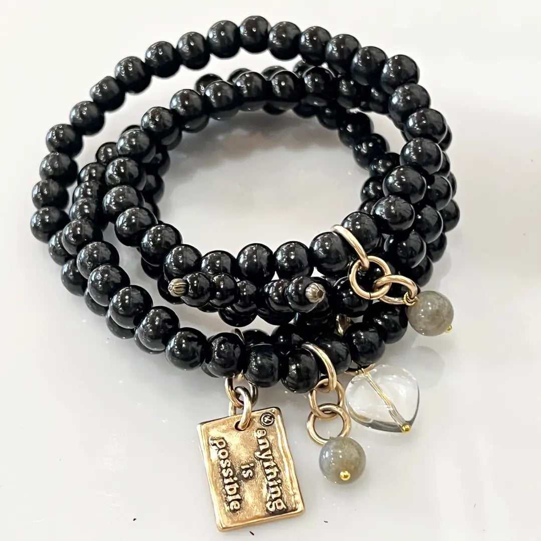 * Can be worn as a wrap bracelet or a single strand or double necklace.