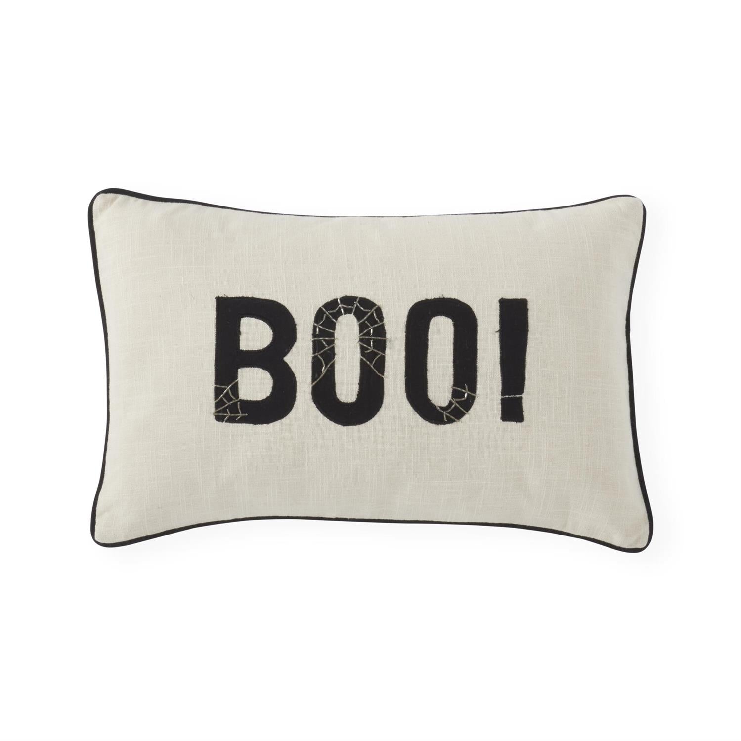 Cream BOO Embroidered Lumbar Pillow