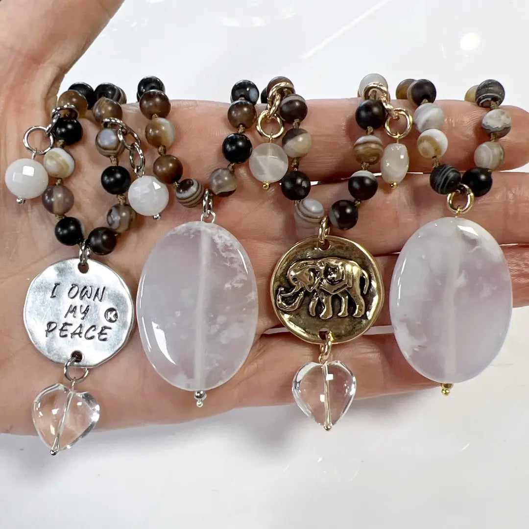 * Off-white agate, moonstone, and crystal quartz heart
